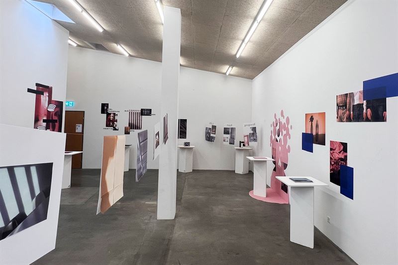Ausstellungssituation im Foyer der Fachklasse Grafik, 2025, Foto: Sebastian Cremers