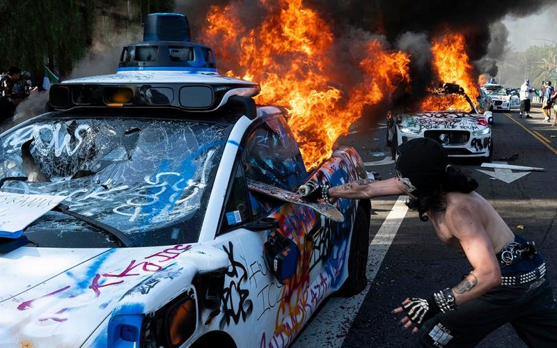 Jon Putma, Rioter in Los Angeles burns driverless waymo, 2025